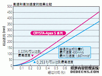 | 日本三豐三坐標CRYSTA-Apex S7106系列的最大驅動速度為519mm/s,最大驅動加速度為2,309mm/s2【500/700/900 系列】。與普通的CNC 三坐標測量機(最大驅動速度430mm/s,最大驅動加速度1,667mm/s2) 進行比較,開始移動1秒后,移動距離產生約100mm 的差。與一般的CNC 三坐標測量機(最大測量速度5mm/s) 相比較,Crysta-Apex S 系列的測量速度(與測量物的接觸速度) 設定為最大8mm/s,能夠實現極度高速的測量,再與Crysta-Apex S 系列的驅動速度? 驅動加速度相配合,總測量時間能夠大幅度縮短。測 量個體增加越多,該差也越大,說明了測量成本的差異。 |